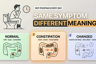 Not pooping every day does not automatically mean something is wrong. The same symptom can mean very different things depending on the pattern.