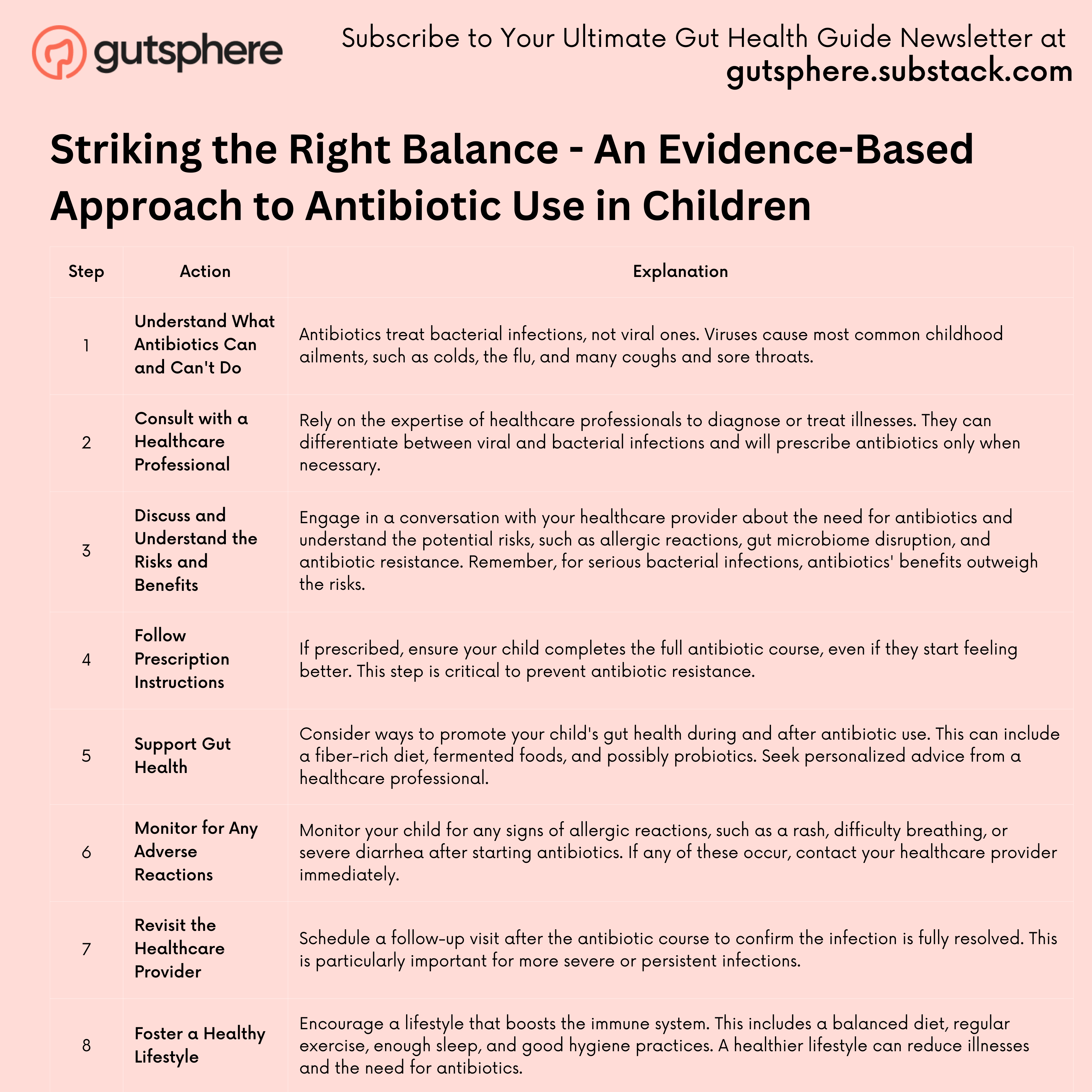 Consider ways to support your child's gut health during and after antibiotic use. This can include a diet rich in fiber and fermented foods, and possibly the use of probiotics. Consult with a healthcare professional for personalized advice.