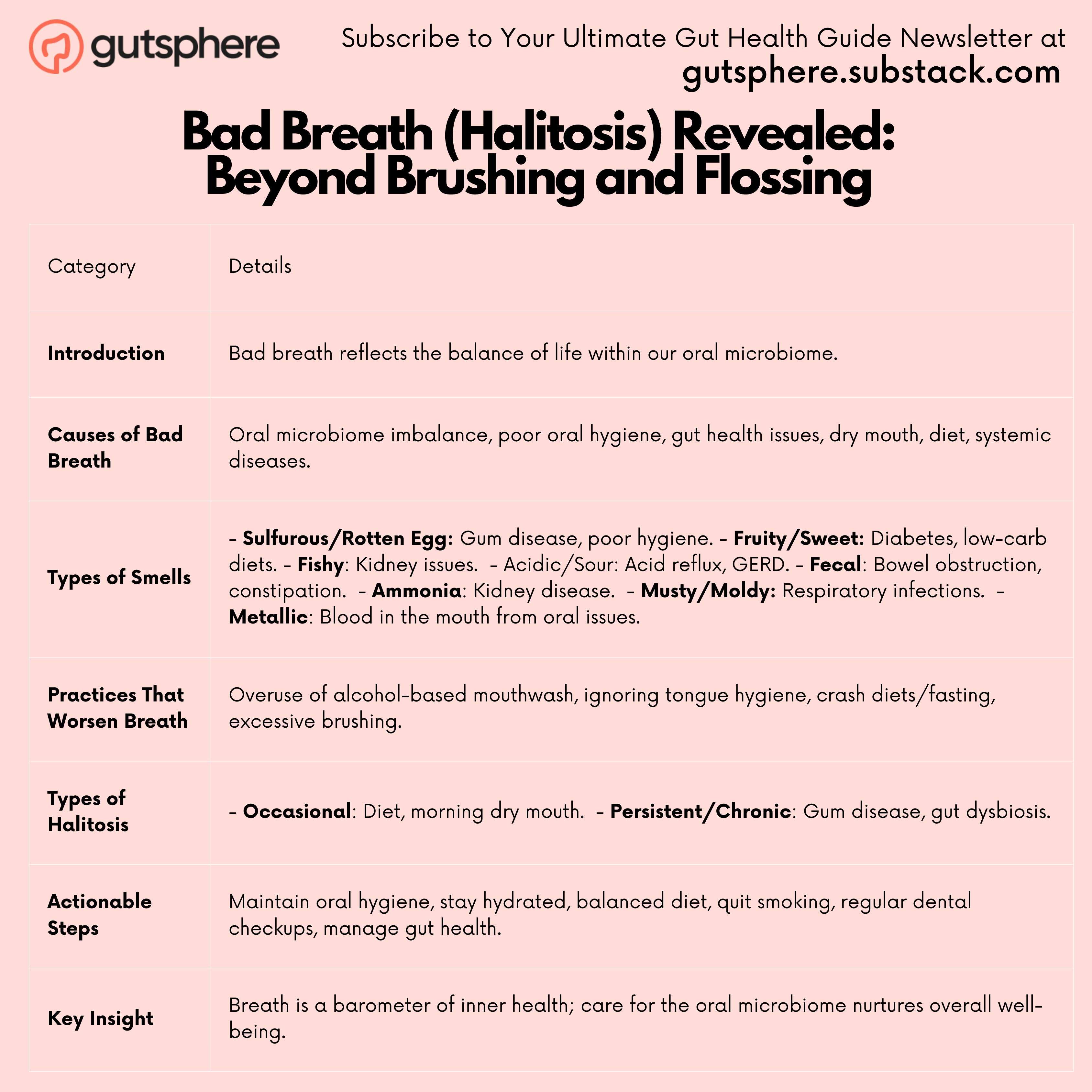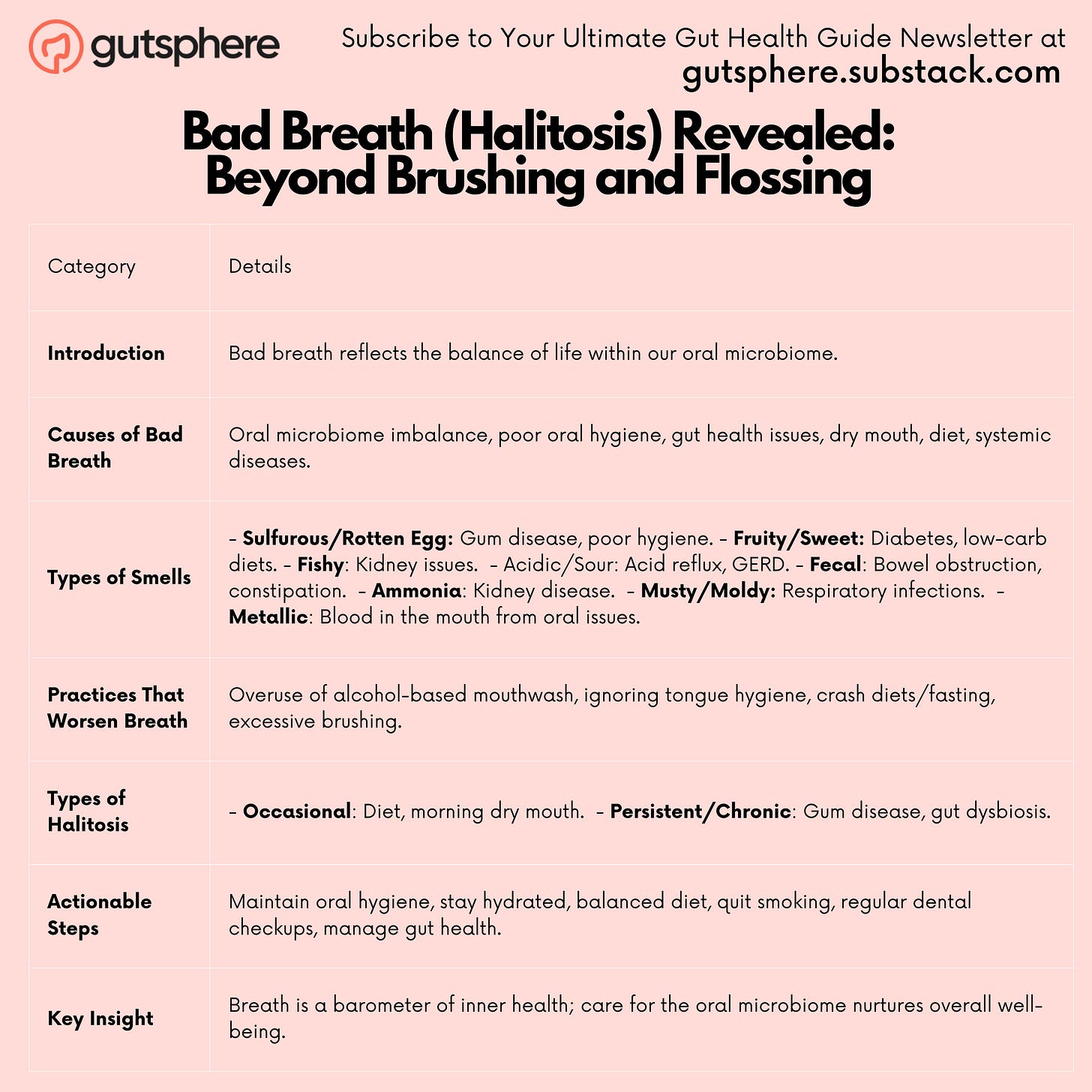 As we close this chapter on halitosis, remember it's not just about masking odors but understanding and nurturing the complex ecosystem within us. In our next edition, "The Gut-Breath Connection: A Microbiome's Tale," we'll explore how our gut health directly shapes our oral well-being and breath.
