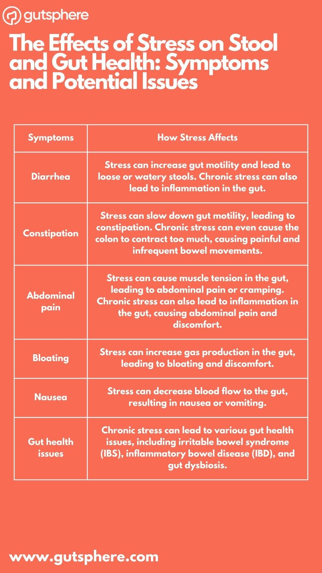 Table Below Summarizes The Effects of Stress on Stool and Gut Health: Symptoms and Potential Issues