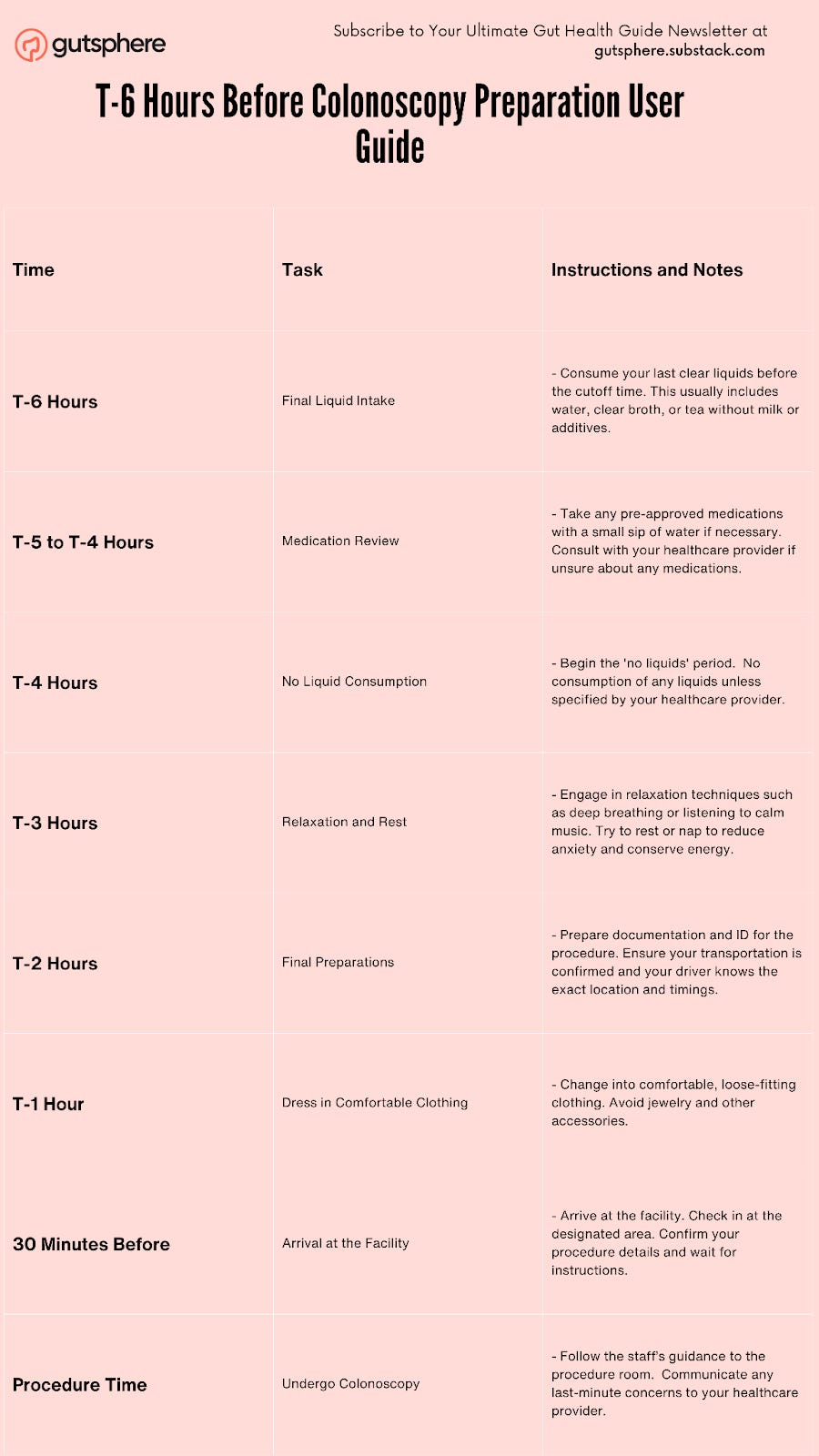 T-6 Hours Before Colonoscopy Preparation User Guide