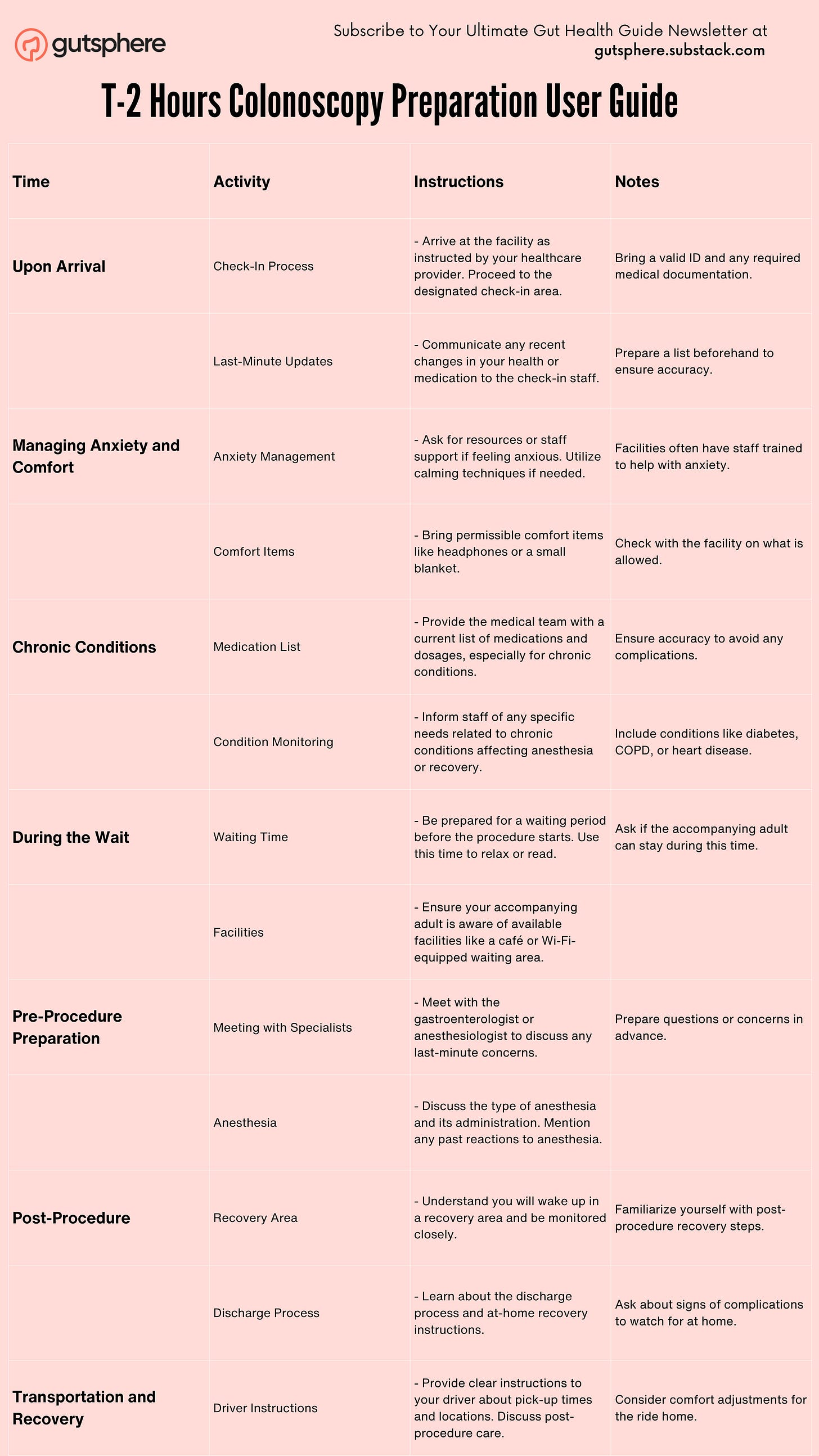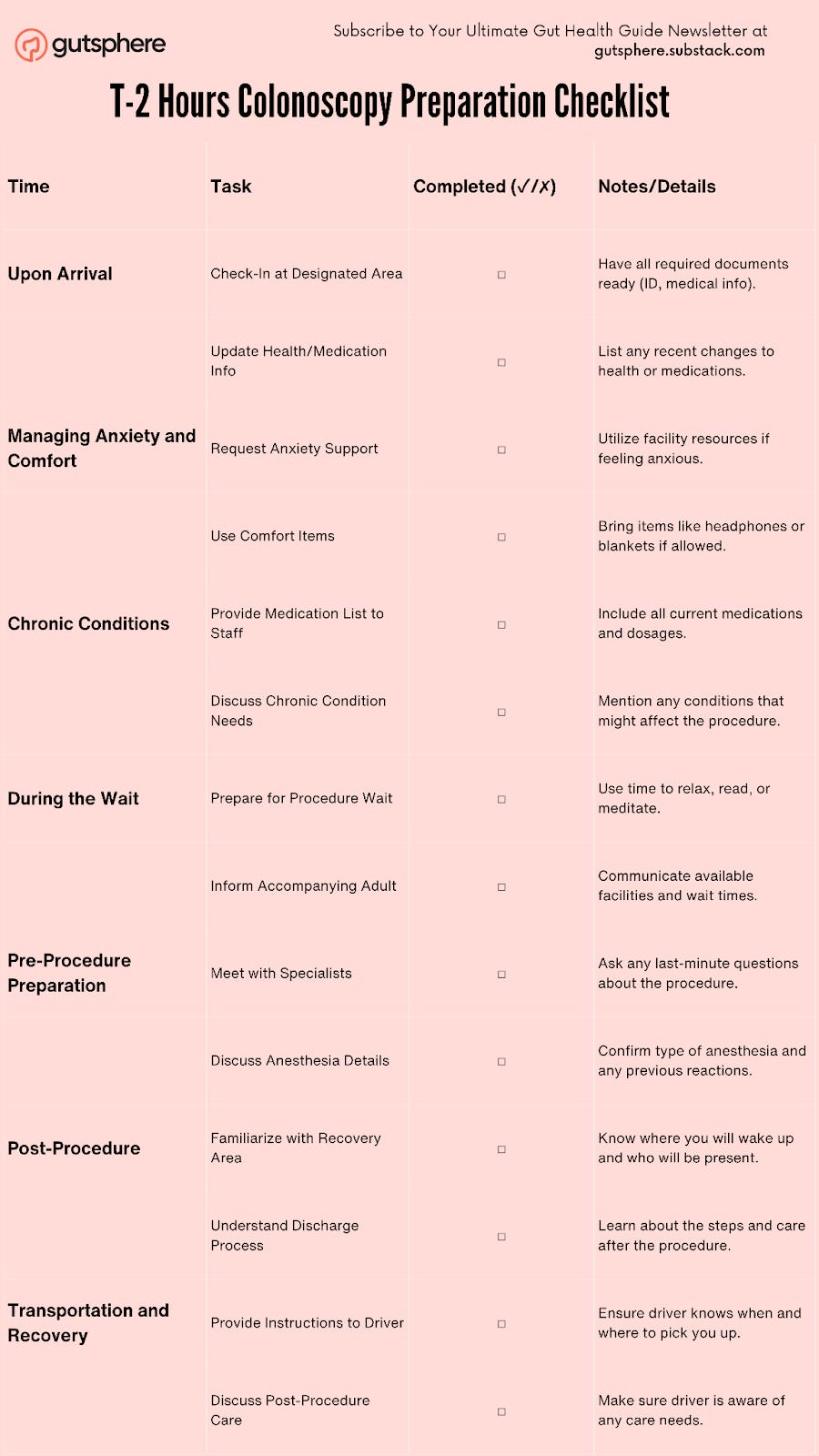 In conclusion, managing anxiety and ensuring comfort when arriving for a colonoscopy is key, especially for those with chronic conditions. Being prepared with the right information and personal comfort items can greatly reduce stress and enhance your overall experience. Always communicate openly with your healthcare team about your anxieties and medical needs to ensure the best care during your procedure.