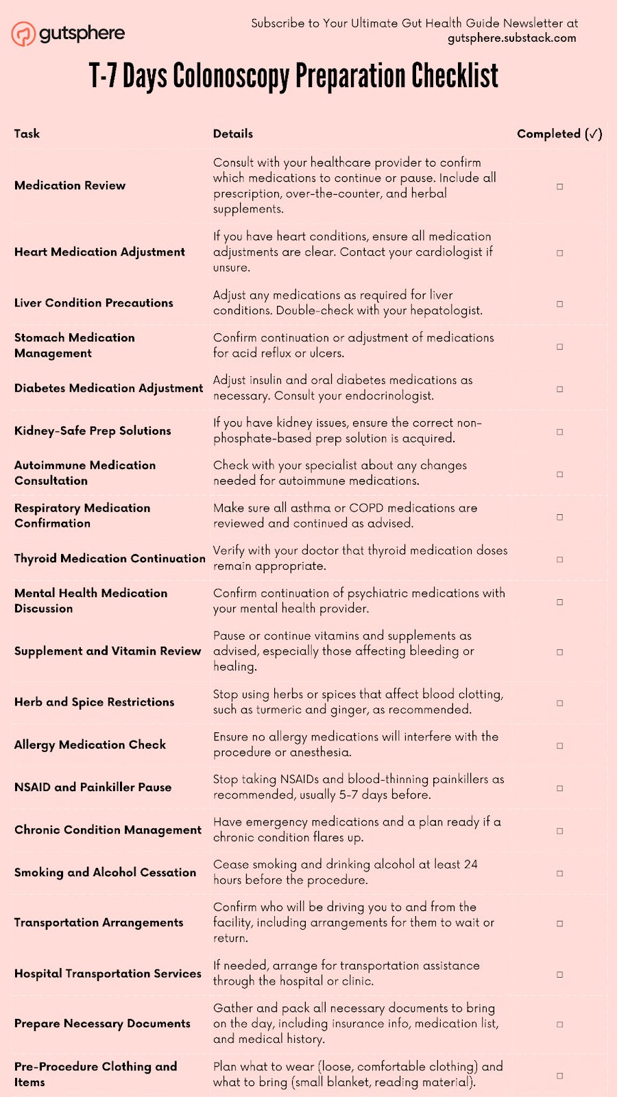 T-7 Days Colonoscopy Preparation Checklist