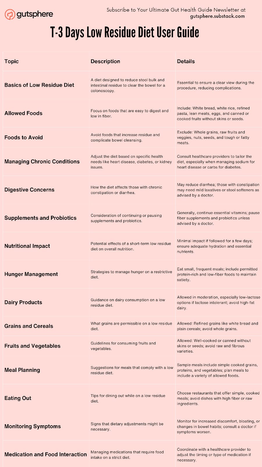 "We've covered everything from the basics of the low residue diet, foods you can enjoy, and those you need to steer clear of, to how to adjust your diet if you're managing specific health conditions like diabetes, heart disease, or kidney issues. We’ve also talked about how to handle digestive issues that might arise and how to incorporate supplements and probiotics safely during this period."
