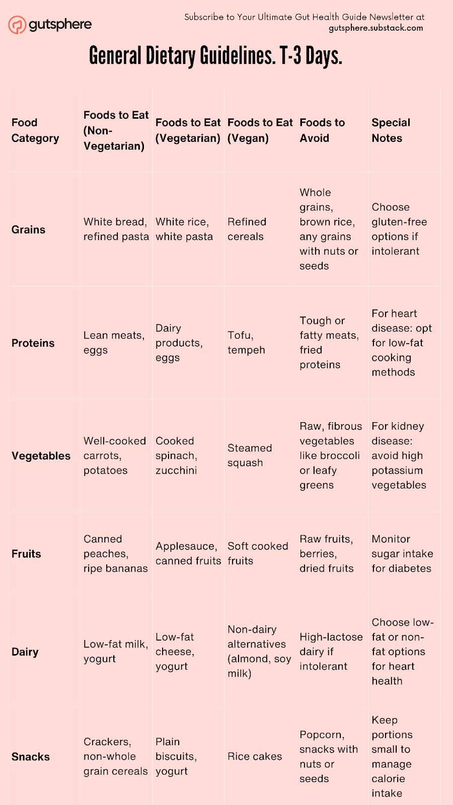 T-3 Days - Dietary Adjustments and Low Residue Diet