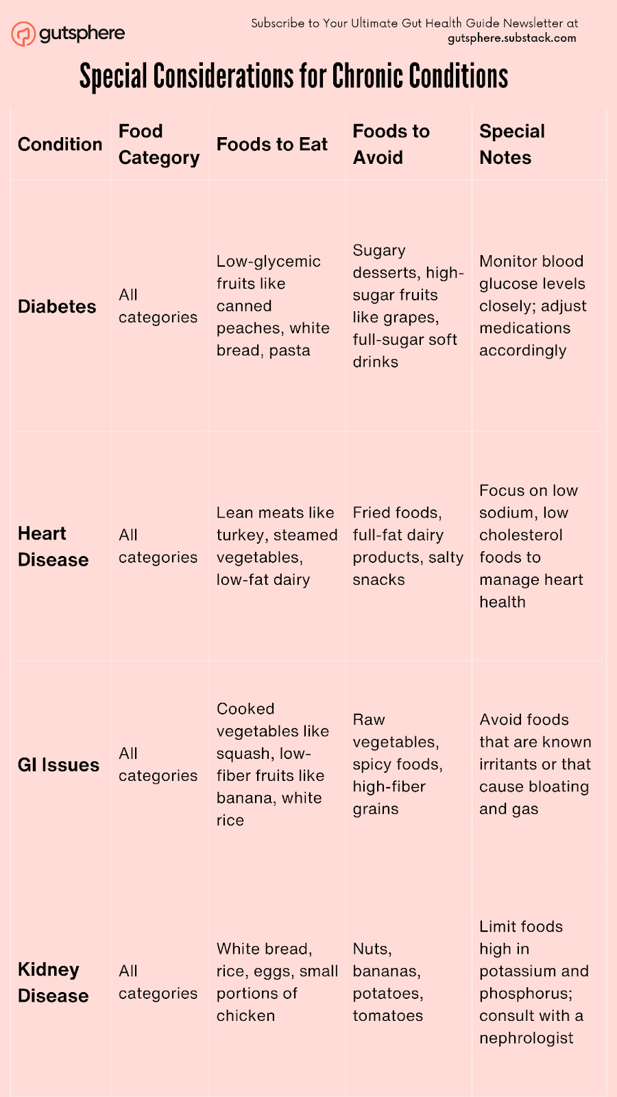 Q4: How should I adjust the low residue diet if I have chronic conditions such as heart disease, diabetes, or kidney issues?