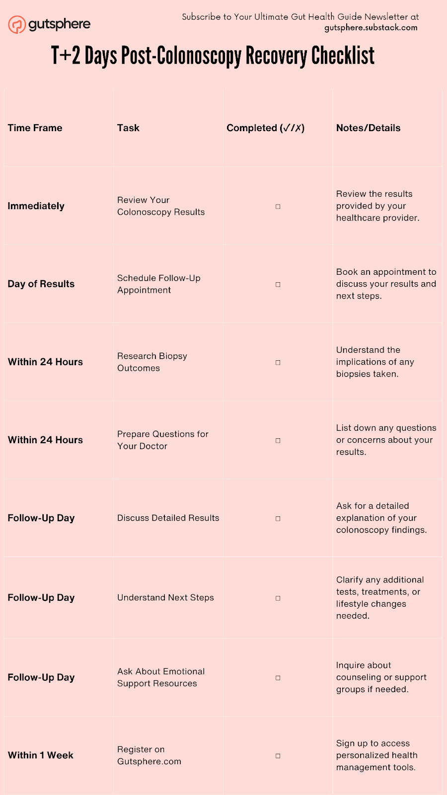 T+2 Days Post-Colonoscopy Recovery Checklist