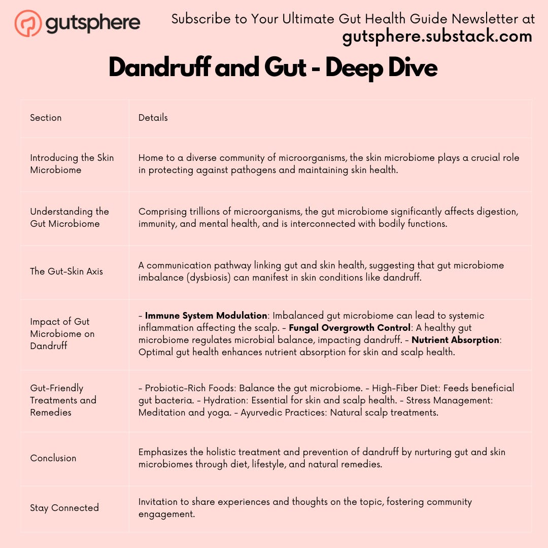 Immune System Modulation: An imbalanced gut microbiome can lead to systemic inflammation, possibly affecting the scalp and exacerbating dandruff.