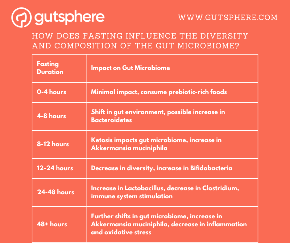 Changes in gut microbiome: Fasting can cause changes in the composition and diversity of the gut microbiome, which can have both positive and negative effects on gut health.