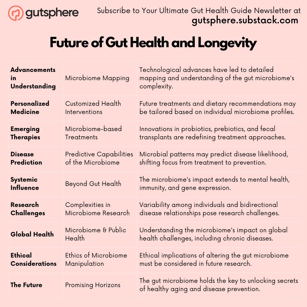 As we conclude this chapter, the horizon of gut health and longevity is broader and more promising than ever. The gut microbiome, once an overlooked aspect of our biology, is now recognized as a key to unlocking the secrets of a healthy, long life. The journey ahead is filled with potential and promise, driven by scientific curiosity and the relentless pursuit of knowledge.