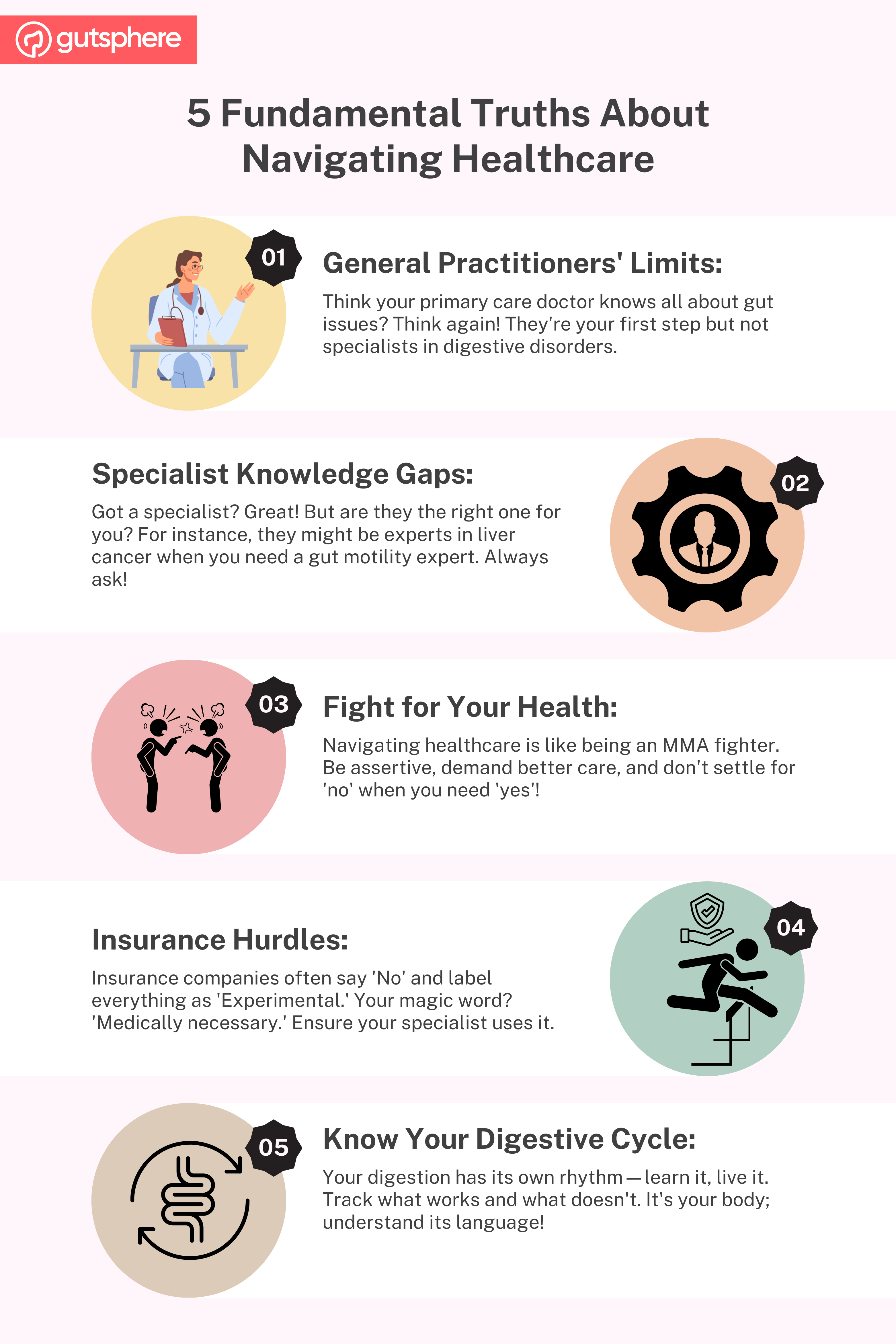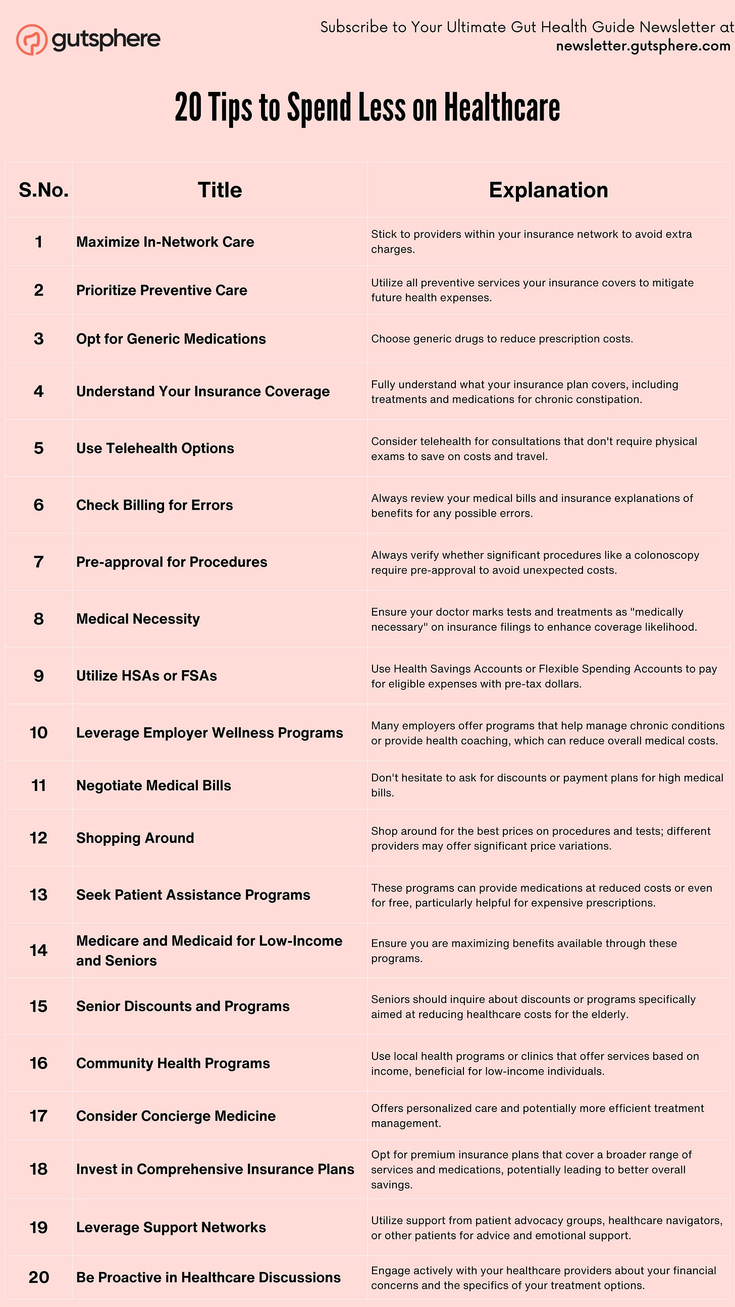 Navigating Healthcare System for Chronic Constipation PatientYour Path to Better GI Health: Four Essential User Guides to Navigating the US Healthcare System.gutsphereJul 02, 2024ShareHere are the Four User guides to Navigate US Healthcare:1.) 10 Surprising Facts About U.S. Healthcare System2.) 5 Fundamental Truths About Navigating Healthcare for Digestive Health.3.) 5 Essential Tips Optimize Your Doctor Appointments:4.) 20 Ways to Spend Less on Healthcare.Thanks for reading Gutsphere - Simplifying GI Care for Everyone, Everywhere! Subscribe for free to receive new posts and support my work.SubscribePreviousNext