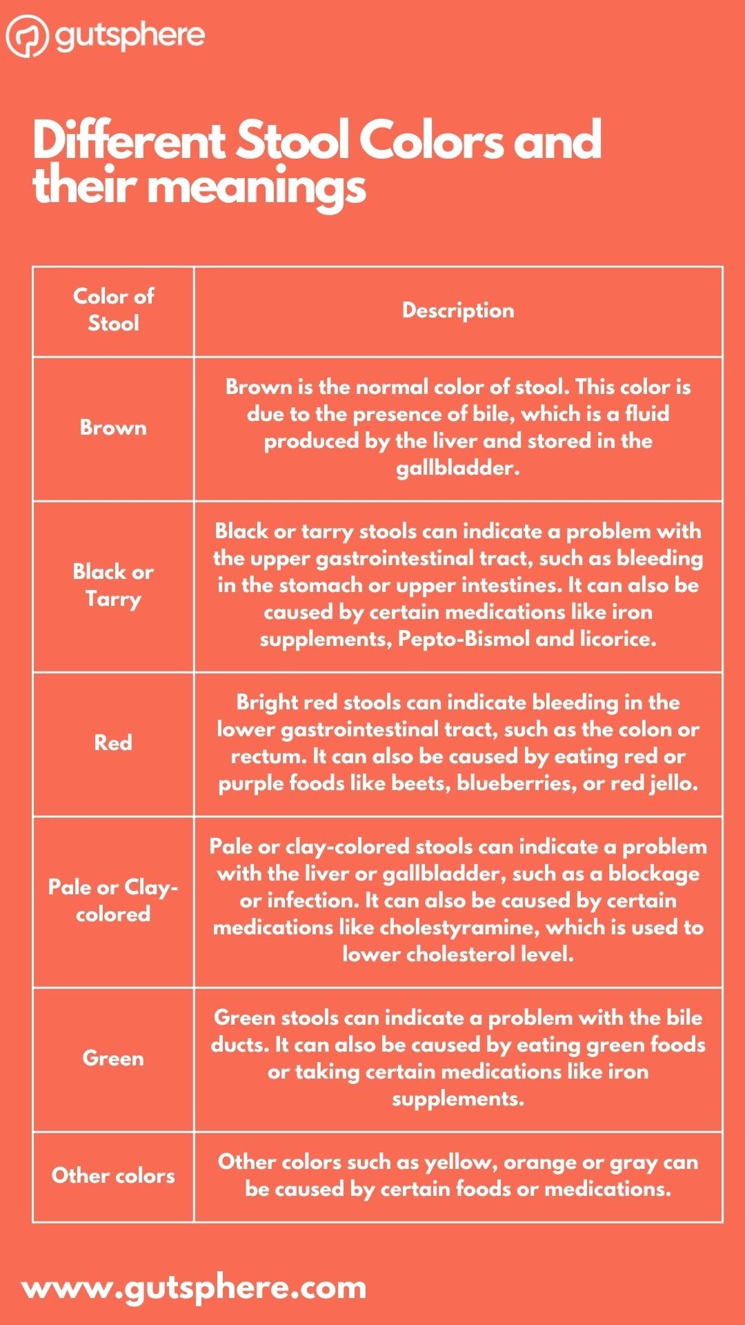 Here is a summary in a tabular format of different stool colors and their meanings.