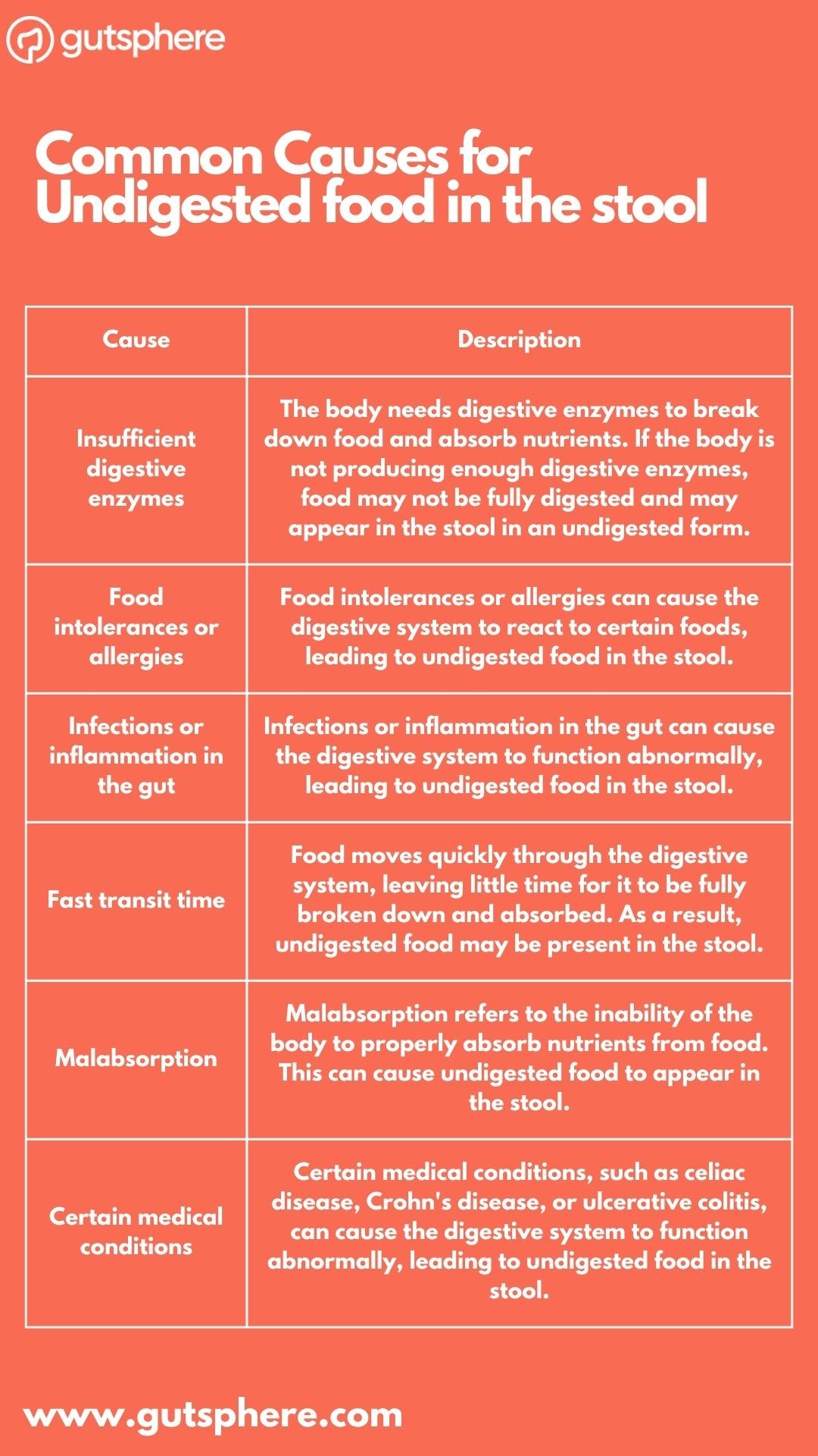 Here is a summary in a tabular format of Common Causes for Undigested Food in the Stool.