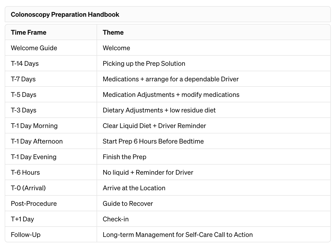 Each installment of the series will include Q&As, user guides, and checklists to ensure they're both actionable and accessible. Let's refer to this as the "Colonoscopy Preparation Handbook."