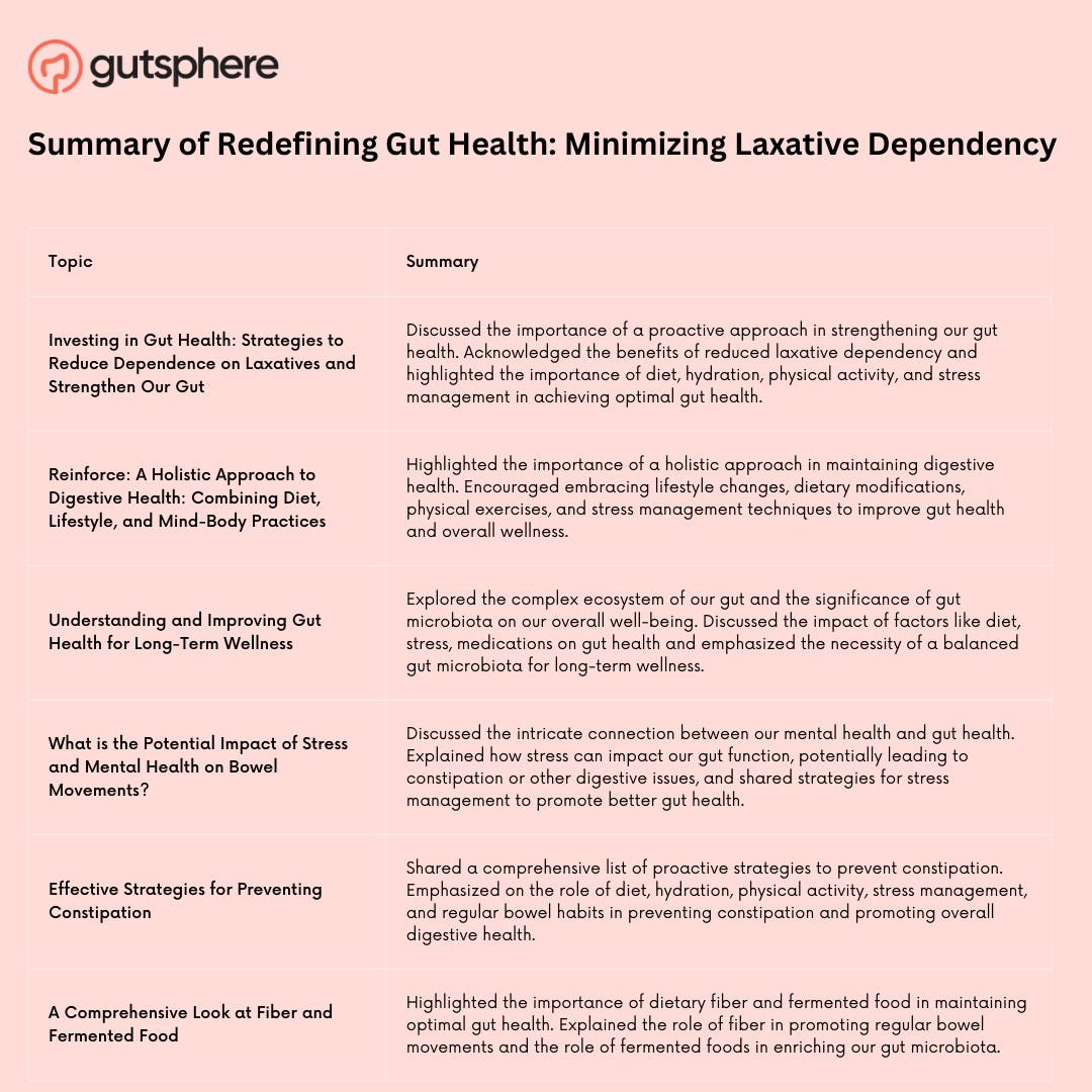 By understanding and addressing these different aspects of gut health, we can reduce our dependence on laxatives and build a stronger, healthier gut for long-term wellness.