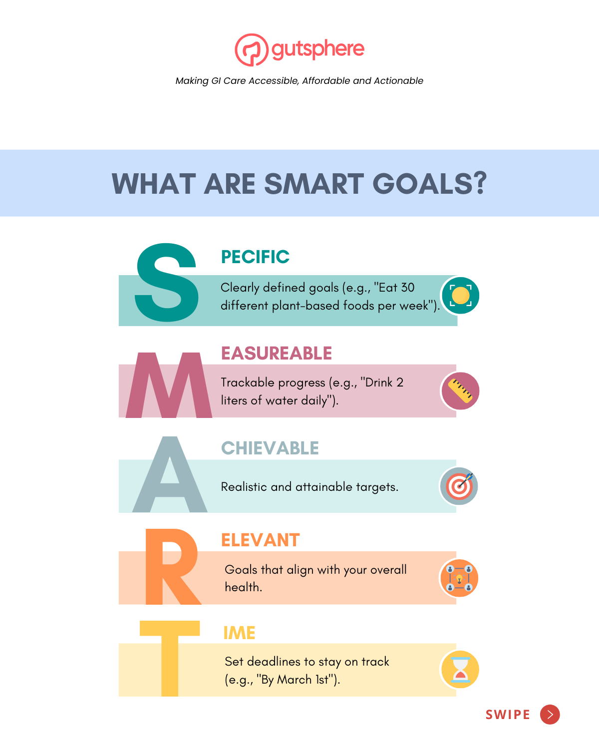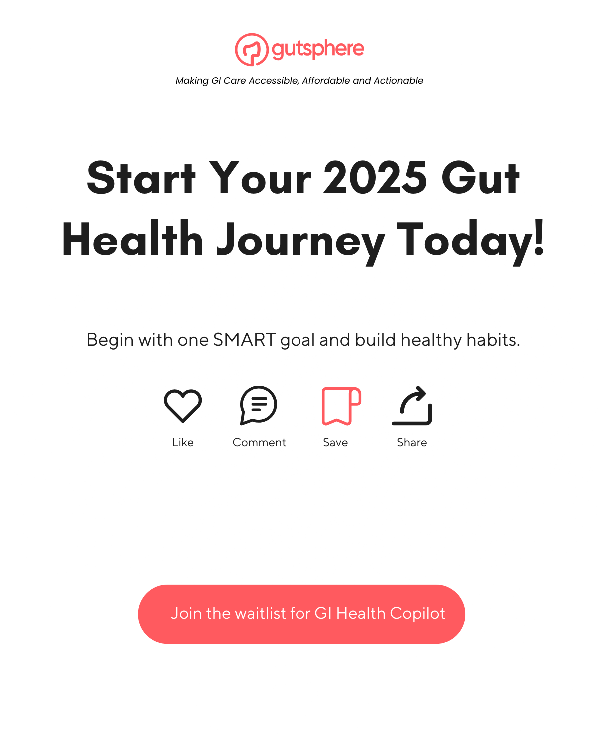 SMART goals = a stronger, healthier gut in 2025!Unlock your digestive wellness with SMART Goals – Specific, Measurable, Achievable, Relevant, and Time-bound strategies to transform your gut health this year!gutsphereJan 21, 2025ShareThanks for reading Gutsphere - Simplifying GI Care for Everyone, Everywhere! Subscribe for free to receive new posts and support my work.SubscribePreviousNext