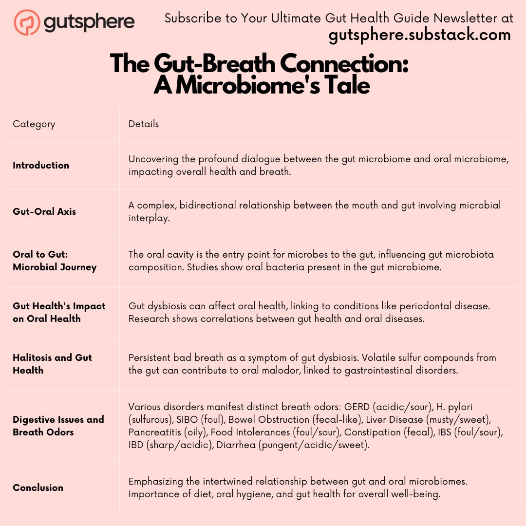 The journey through the gut-breath connection reveals a complex, intertwined relationship between our gut and oral microbiomes. Understanding this connection is crucial for maintaining not just oral health and fresh breath but also our overall well-being. Embracing a diet rich in probiotics, maintaining good oral hygiene, and being mindful of our gut health are key steps in this ongoing tale of two microbiomes.
