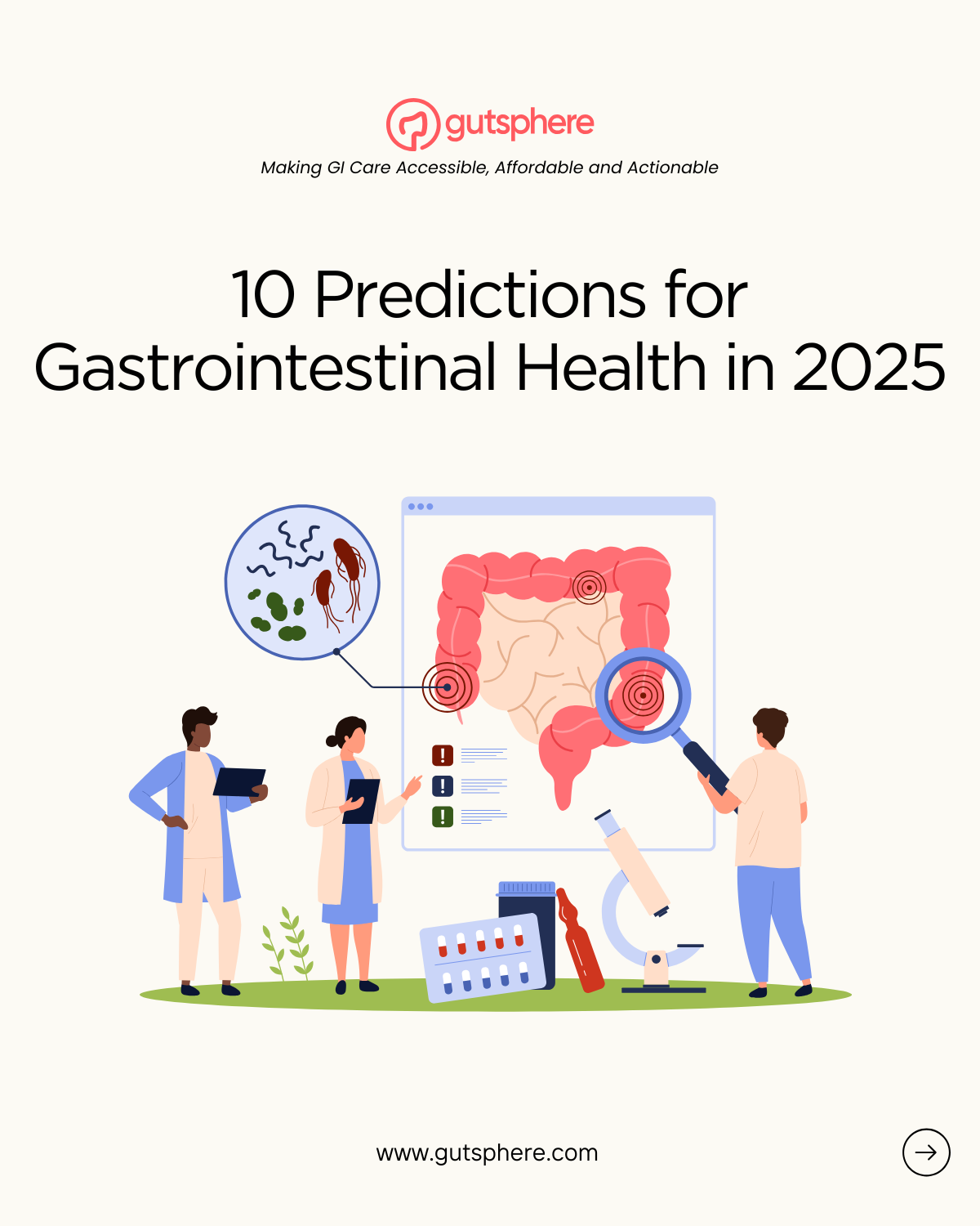 Top 10 GI Health Predictions for 2025The Gut Health Evolution is Happening! Explore the breakthroughs shaping the future of digestive wellness in 2025 – from precision probiotics to gut-brain innovations. gutsphereJan 20, 2025ShareThanks for reading Gutsphere - Simplifying GI Care for Everyone, Everywhere! Subscribe for free to receive new posts and support my work.SubscribePreviousNext