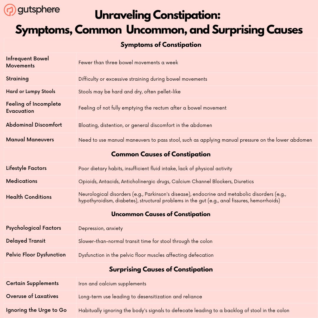 Unraveling Constipation: Symptoms, Common and Uncommon Causes