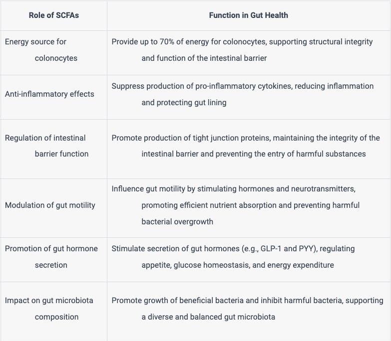 SCFAs have been shown to exert various beneficial effects on gut health, including reducing inflammation, promoting the growth of beneficial bacteria, and maintaining the integrity of the intestinal barrier. This is particularly important in preventing the development of conditions such as inflammatory bowel disease, irritable bowel syndrome, and obesity. Let’s add some more detail.